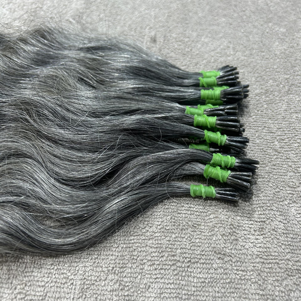 ผมต่อปลายแหลมธรรมชาติสีเทาสำหรับผู้หญิง100% อินเดียเรมี่ไม่พันกันนุ่มและปลอดภัยสำหรับผมบาง