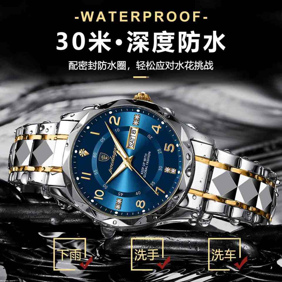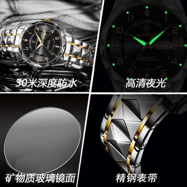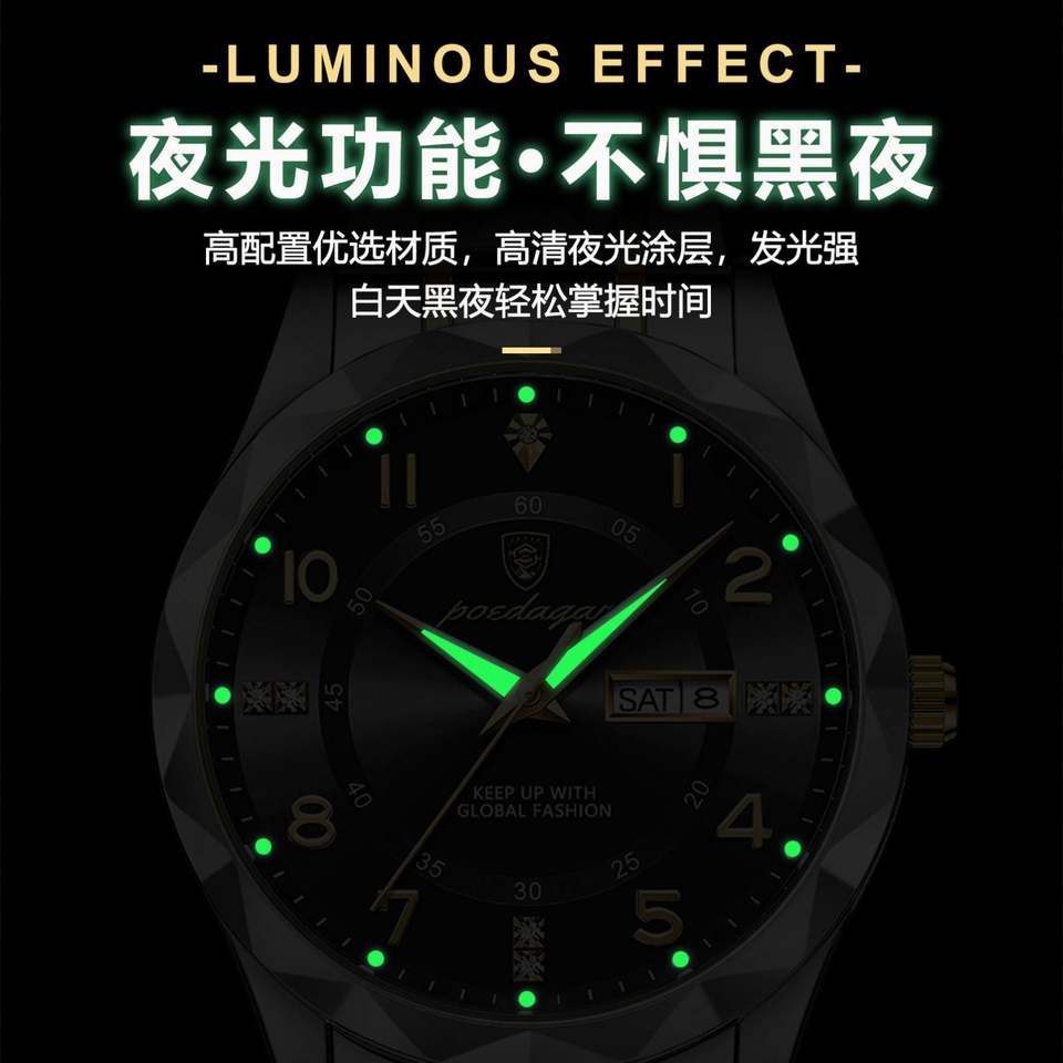 สวิสแบรนด์นาฬิกาข้อมือผู้ชายธุรกิจเรืองแสงกันน้ำรุ่นใหม่ 615 วันที่ สัปดาห์ สแตนเลสสตีล ควอตซ์ โอนีออน คราวน์