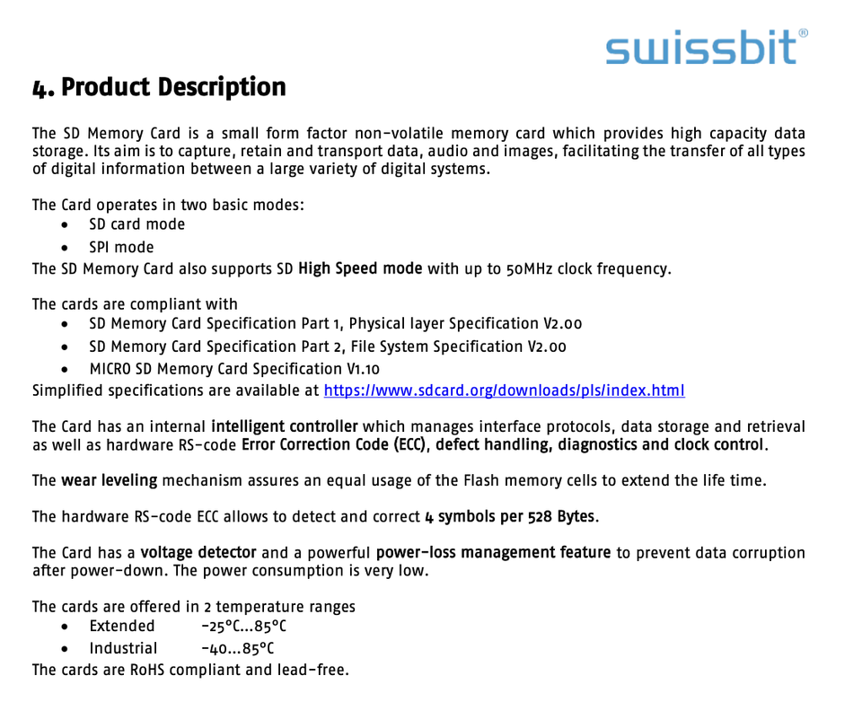 Swissbit S-250 Series SD Card 512MB up to 2GBหมายเลขรุ่น