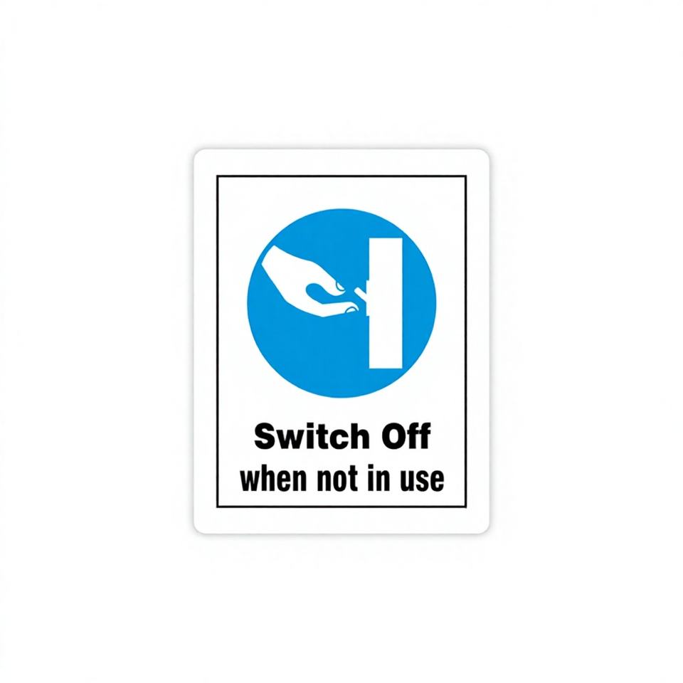 ปิดสวิตช์เมื่อไม่ใช้งาน ป้ายสติกเกอร์กาวกันน้ำพร้อมคำแนะนำด้านความปลอดภัยทางไฟฟ้า ผิวด้าน