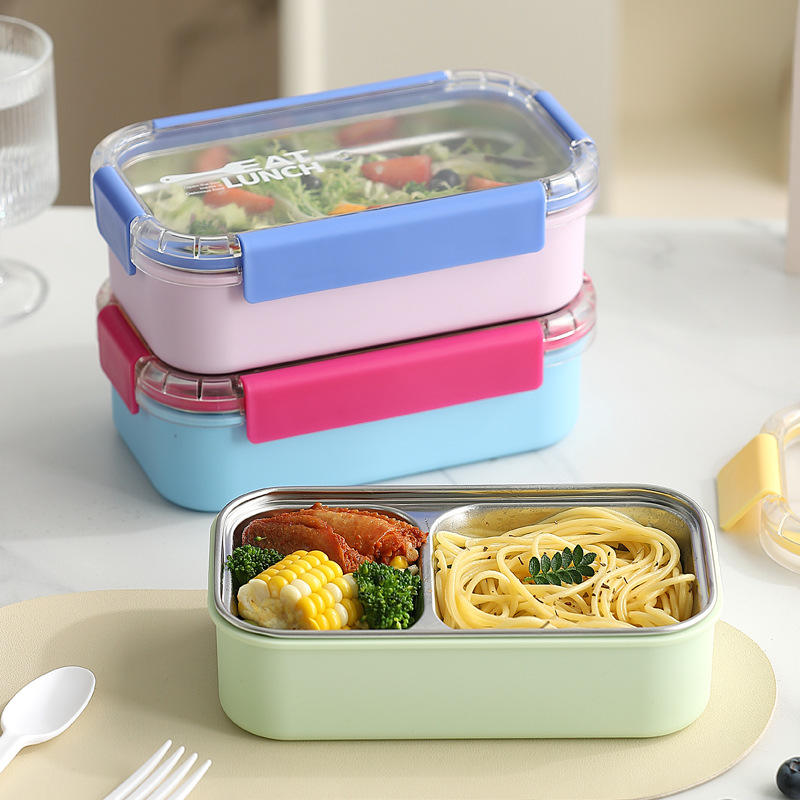กล่องอาหารกลางวันสแตนเลส SWY 304 ทรงสี่เหลี่ยมผืนผ้า ความจุขนาดใหญ่ พร้อมฝาพลาสติกแบบมีตัวล็อค สำหรับผู้ใหญ่ พนักงานออฟฟิศ และนักเรียน