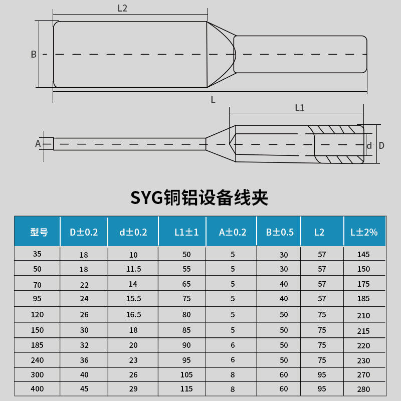 คลิปหนีบสายไฟแบบจระเข้ Syg ทองแดง-อะลูมิเนียม 35-630 มม. 10kv ทนทานสำหรับการเชื่อมต่อสายเคเบิล