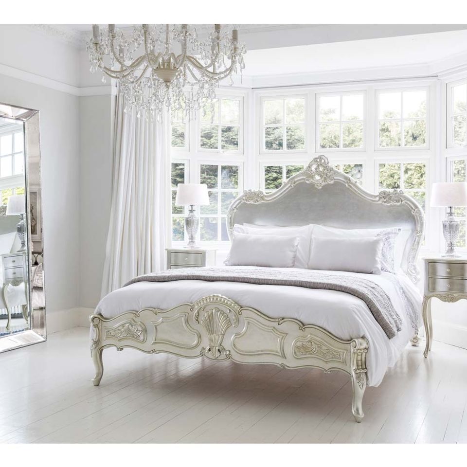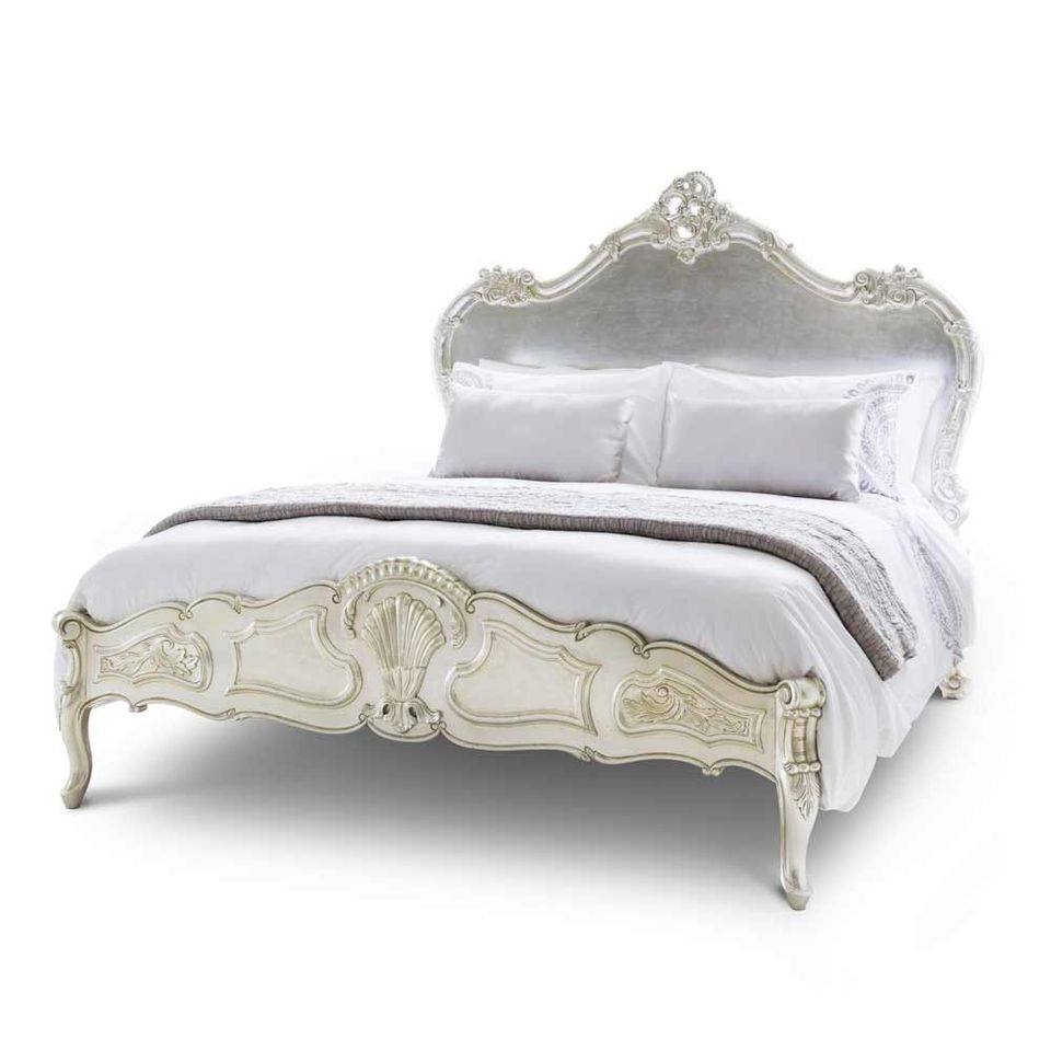 Sylvia Serenity Silver French Style Luxury Made of Mahogany and Hand Carved with Antique Silver Finish for Bedroom