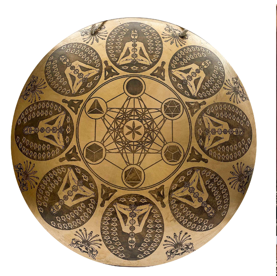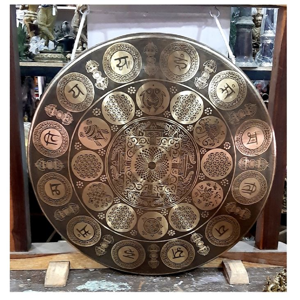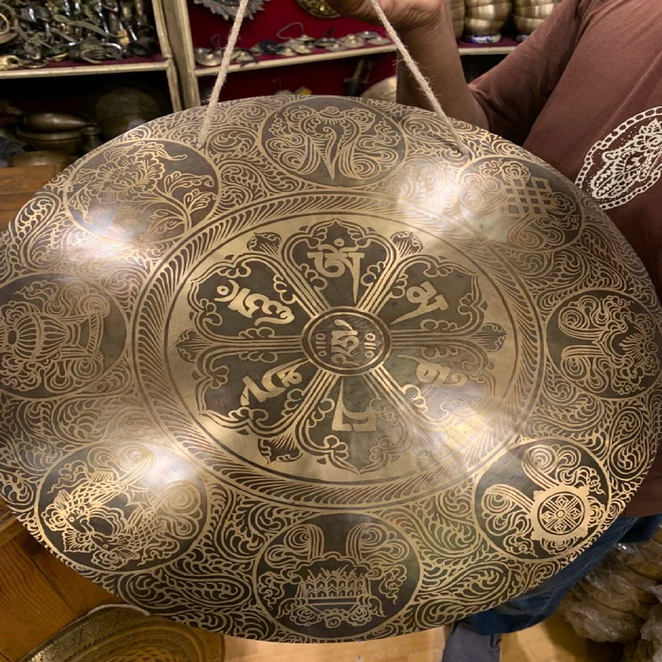 ฆ้องซิมโฟนีแกะสลักแมนดาลาแฮนด์เมดสำหรับสวดมนต์ทางศาสนาการบำบัดด้วยเสียงการทำสมาธิโยคะ