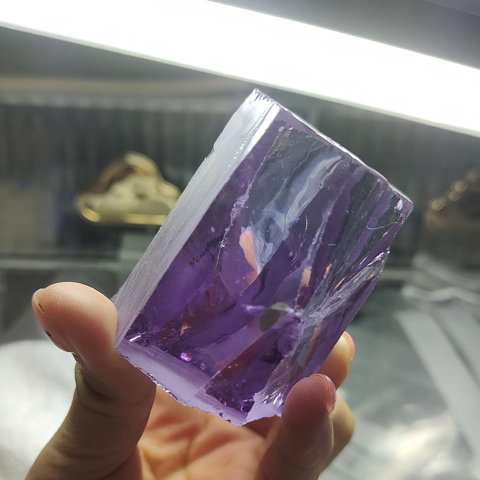 หินซีซีซีสังเคราะห์แบบไม่เจียระไน สีลาเวนเดอร์ วัตถุดิบสำหรับทำพลอยหลวม