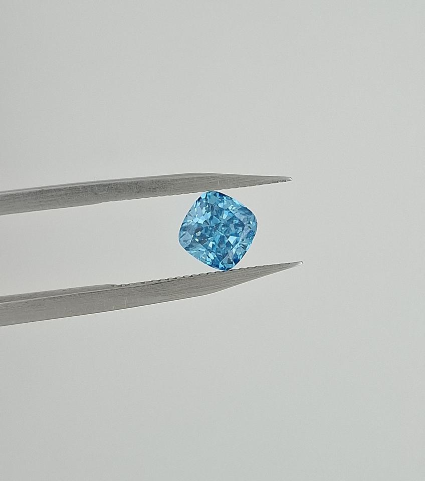 พลอยสังเคราะห์ทรงคุชชั่นสีน้ำเงินเข้ม 1 กะรัต รับรองโดย IGI ผลิตในห้องปฏิบัติการด้วยวิธี CVD HPHT ความสะอาดระดับ VS1 สำหรับงานหมั้น