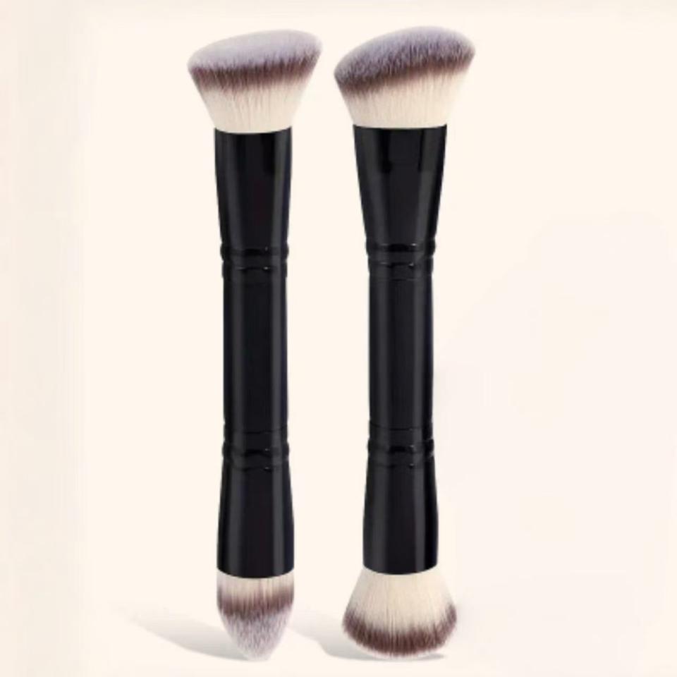 แปรงแต่งหน้าแบบสองหัว ขนสังเคราะห์วีแกน ใช้ได้หลากหลาย สำหรับรองพื้น ปัดแก้ม คอนทัวร์ และแป้ง