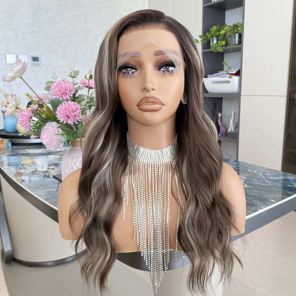 วิกผมสังเคราะห์แบบลูกไม้ด้านหน้า ทนความร้อน ลอนลึกแบบหลวมๆ 13x4 คุณภาพสูง สีน้ำตาลเข้ม ยาว