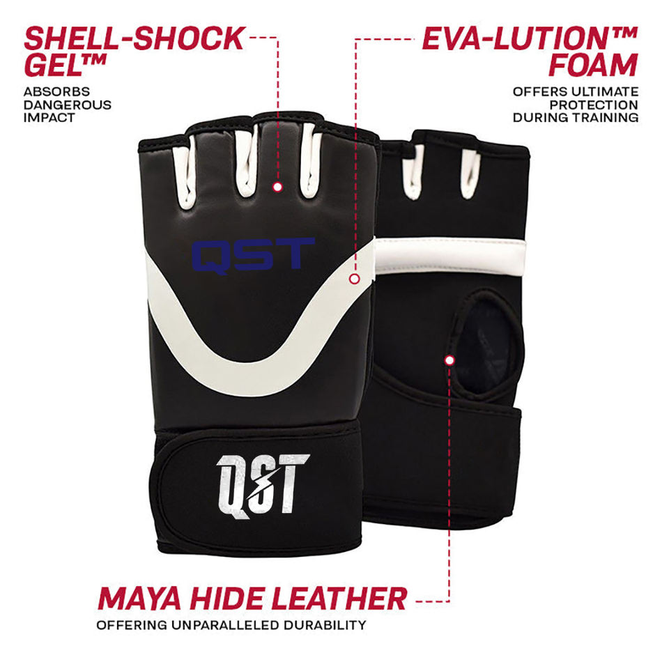 นวมชกมวยหนังสังเคราะห์กันกระแทก8มม. นวมด้านในแบบเจลพร้อมตะขอและห่วงปิดสำหรับการเจาะ MMA
