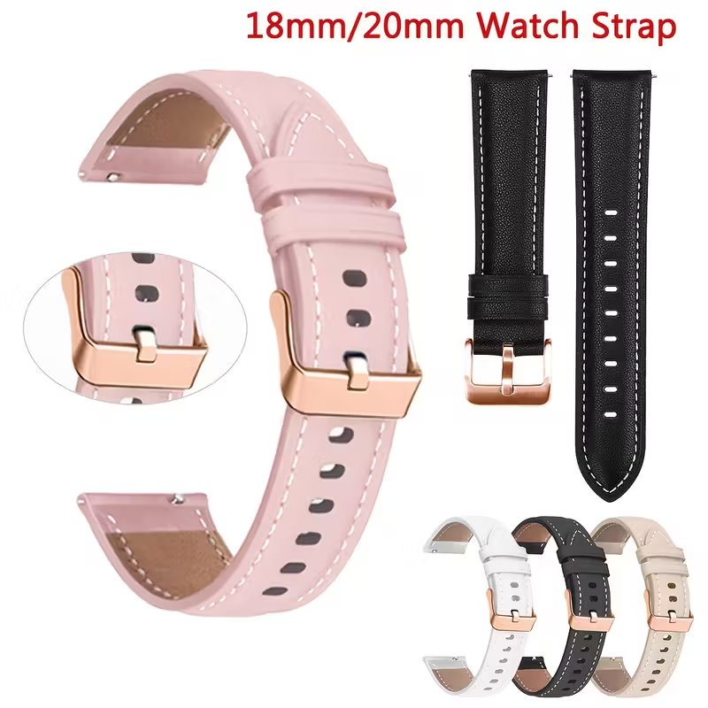 Synthetic Leather Smartwatch Bands 18mm/20mm Watch Replacement Wrist Band for Samsung Galaxy FE/8/7/5/6/3/4 Wristband Accessory