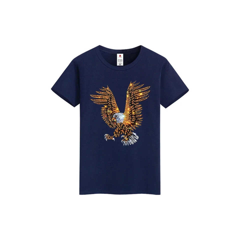 Synthetic Leather T-shirt with Eagle Print Shiny Crystal Rhinestones Sturdy Metal Buckle Customizable Fit in Bling Style