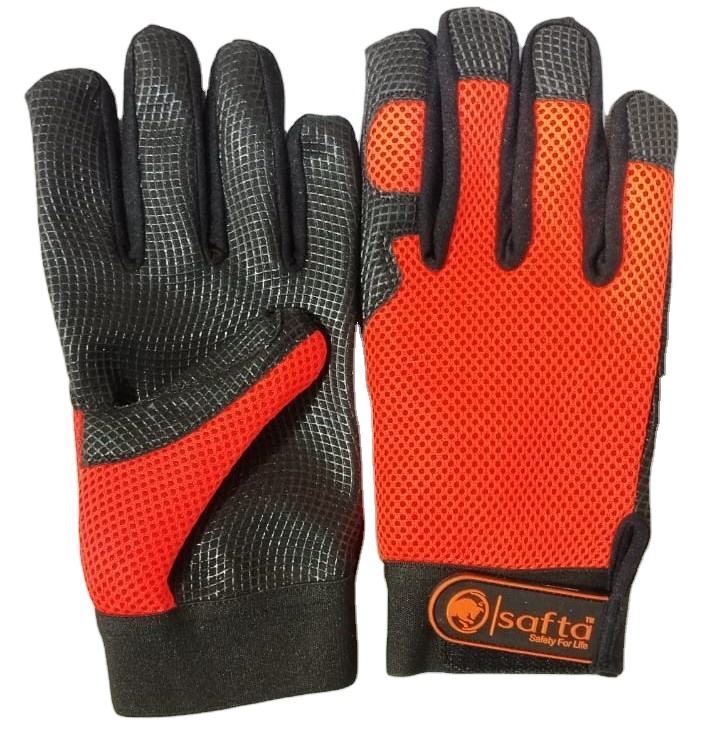 ถุงมือนิรภัยสำหรับงานหนังสังเคราะห์ที่มีฝ่ามือซิลิโคนป้องกันการกระแทกระบายอากาศสำหรับงานกลางแจ้งทำสวน