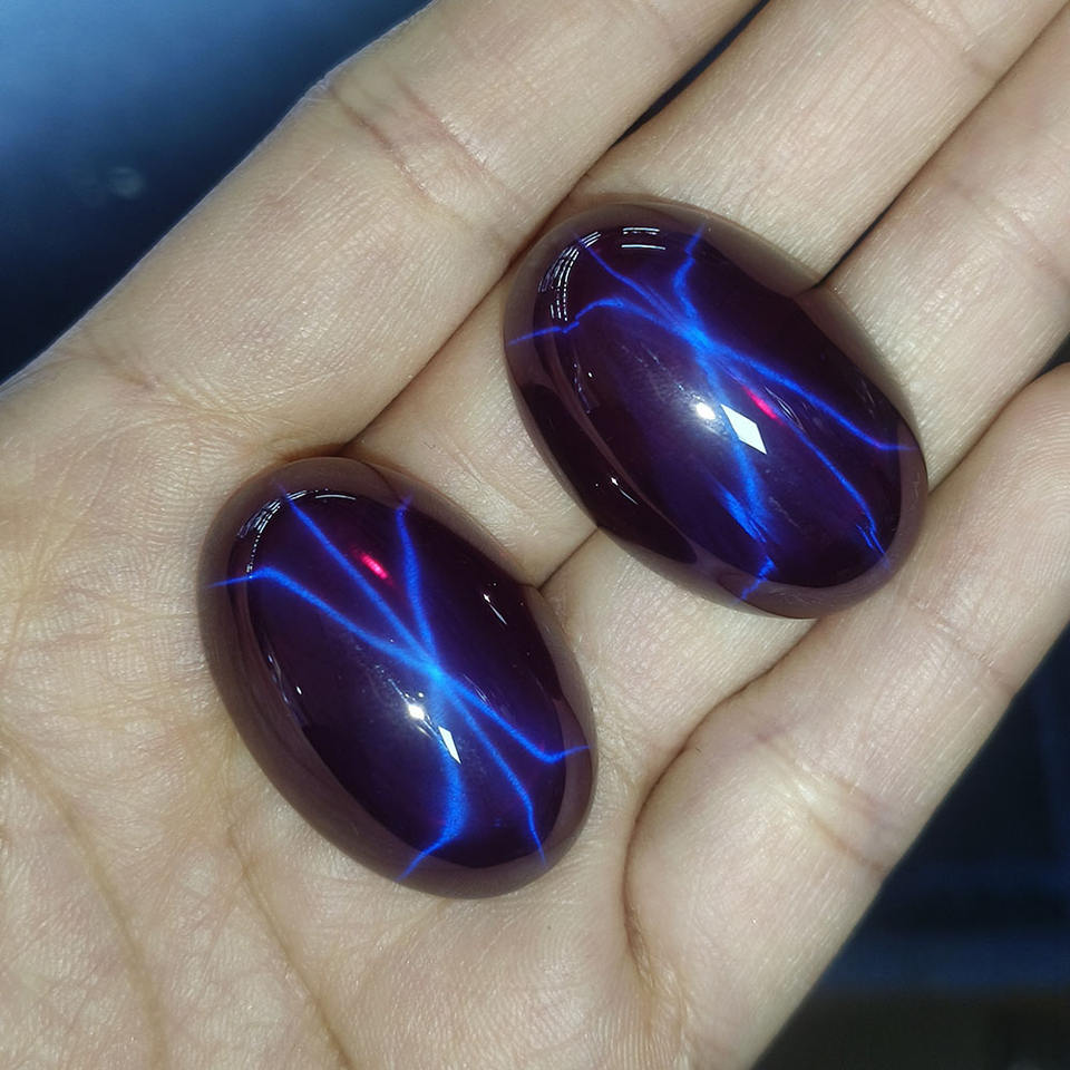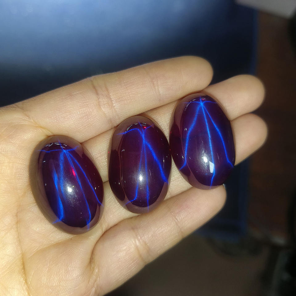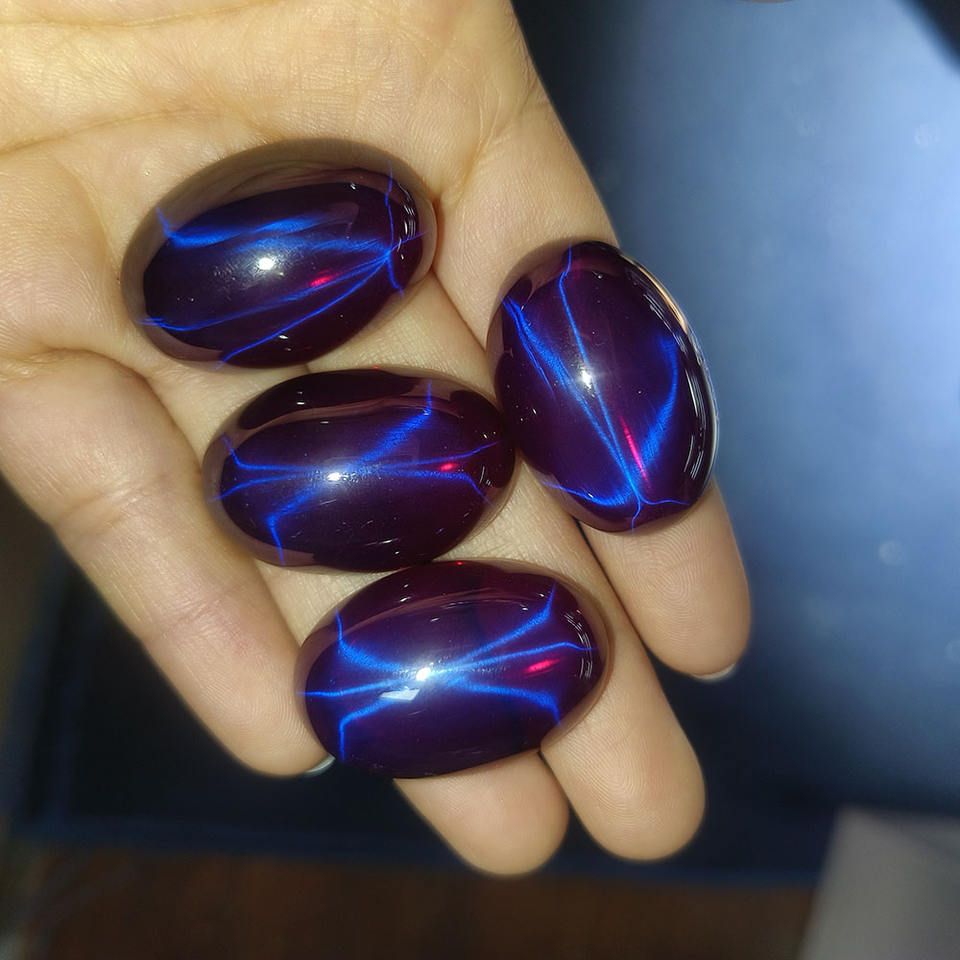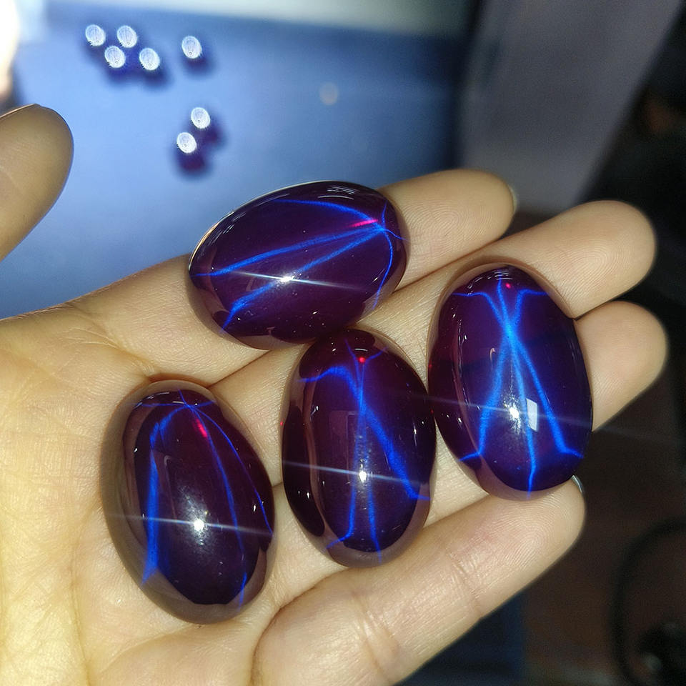 พลอยสังเคราะห์ทรงรีแบบคาโบชอง สีม่วงดาว ขนาด 20x30 มม. สำหรับทำเครื่องประดับ