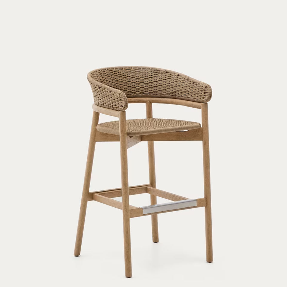 เก้าอี้บาร์เฟอร์นิเจอร์กลางแจ้งทำจากไม้สักธรรมชาติรุ่นใหม่หรูหราใช้ในบ้านบาร์ผสมผสานกับเชือกธารา