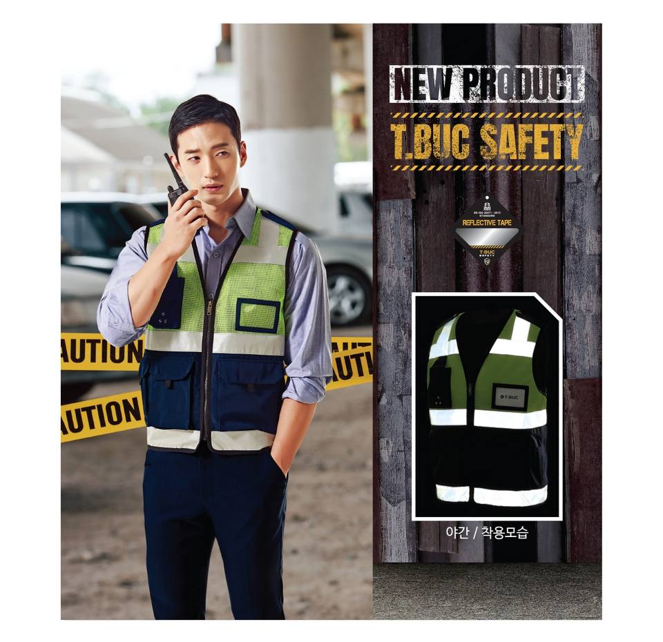 เสื้อกั๊กนิรภัยตาข่าย TBS-5011แบรนด์เกาหลี [t.buc] เทปสะท้อนแสงที่ผ่านการรับรอง ISO 20471 | โพลีเอสเตอร์100%