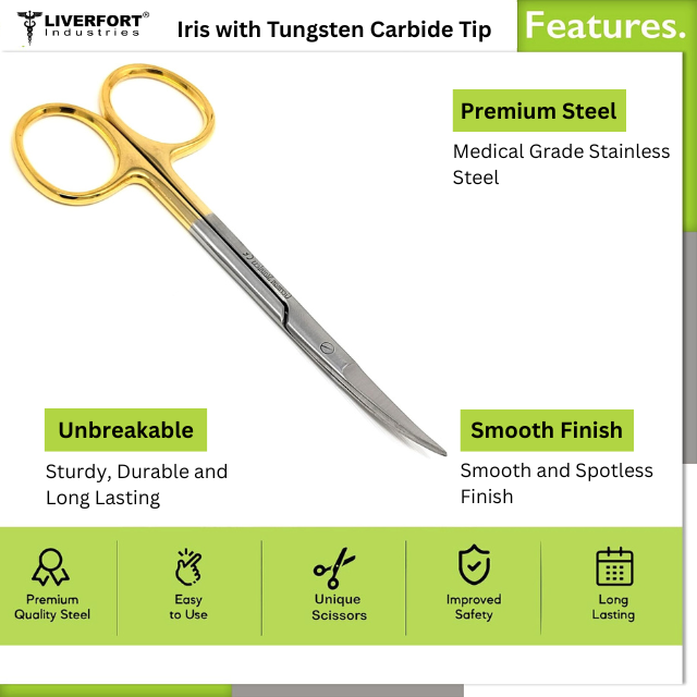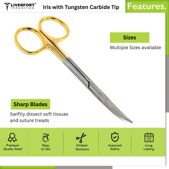 T.c กรรไกรไอริส4 "4.5" แบบโค้งตัดอัตโนมัติแบบแมนนวลใช้สำหรับทันตกรรมปลายแหลมทังสเตนคาร์ไบด์ CE