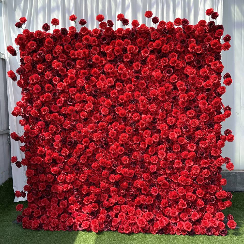 3D T-FW041ม้วนผ้าประดิษฐ์ดอกไม้ผนัง8FT x 8FT ผนังของดอกไม้ดอกกุหลาบหรูหราฉากหลังผนังสำหรับตกแต่งงานแต่งงาน