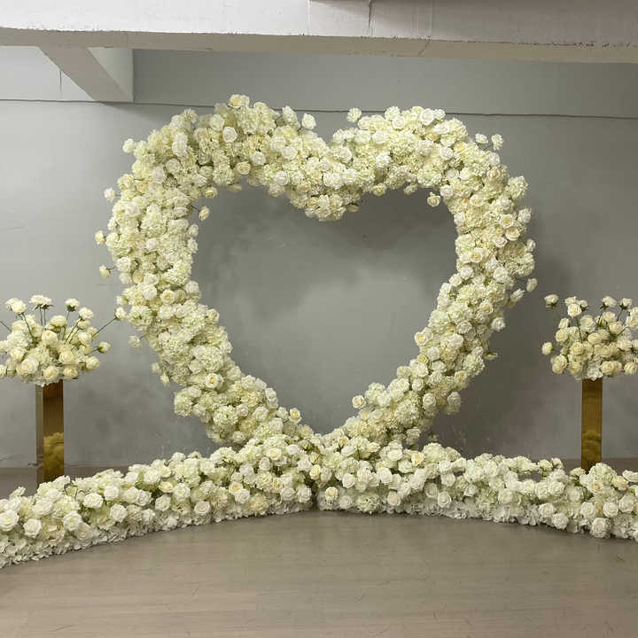 ซุ้มดอกไม้รูปหัวใจสีขาว T-HFA136 สำหรับขายส่ง ซุ้มดอกไม้ประดิษฐ์รูปหัวใจ ซุ้มดอกกุหลาบรูปหัวใจสำหรับตกแต่งงานแต่งงาน