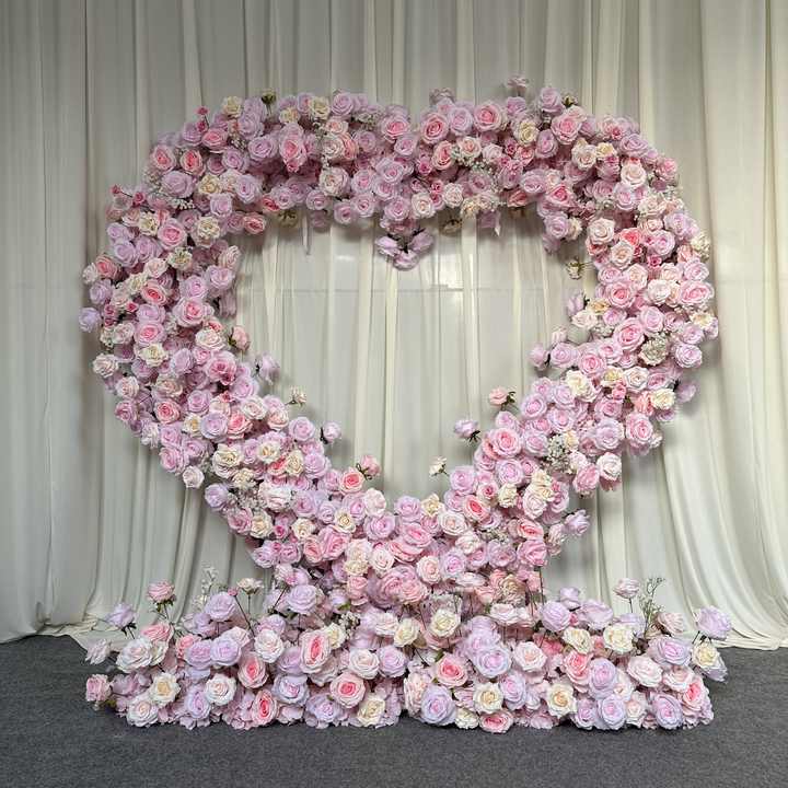ซุ้มดอกไม้รูปหัวใจสีชมพู T-HFA137 ขนาด 8*8 ฟุต ซุ้มดอกกุหลาบประดิษฐ์รูปหัวใจ ซุ้มดอกกุหลาบผ้าไหมรูปหัวใจ พร้อมดอกไม้สำหรับตกแต่งขอแต่งงาน