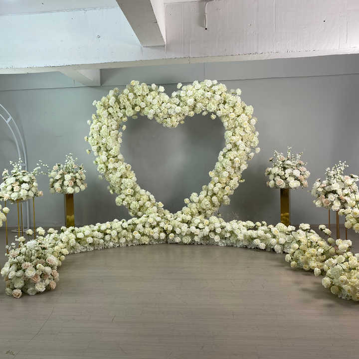 ซุ้มดอกไม้รูปหัวใจหรูหรา T-HFA138 พร้อมดอกไม้ประดิษฐ์ขนาด 8*8 ฟุต สำหรับตกแต่งงานแต่งงาน