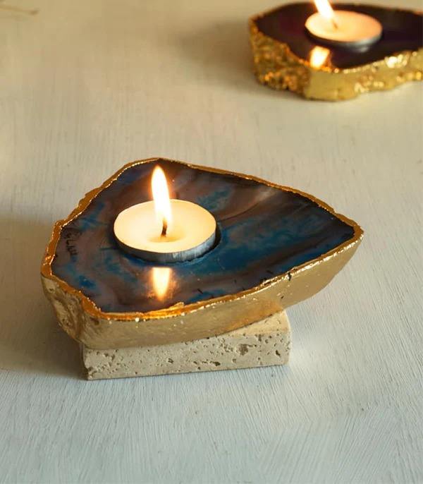 ที่วางเทียนทีไลท์ดีไซน์ใหม่ ทำด้วยมือจากหินอาเกต ที่วางเทียนหินธรรมชาติสำหรับตกแต่งบ้าน ขัดเงา ZH TRADER Love