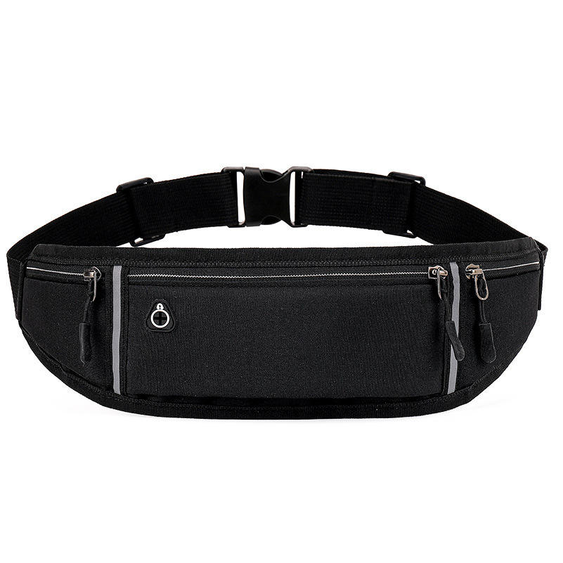 กระเป๋าคาดเอวทรงตัว T สำหรับวิ่งปั่นจักรยานพร้อมกระเป๋าใส่โทรศัพท์ผ้าอ็อกซ์ฟอร์ดกันน้ำสำหรับทุกเพศสีเทาสีดำ