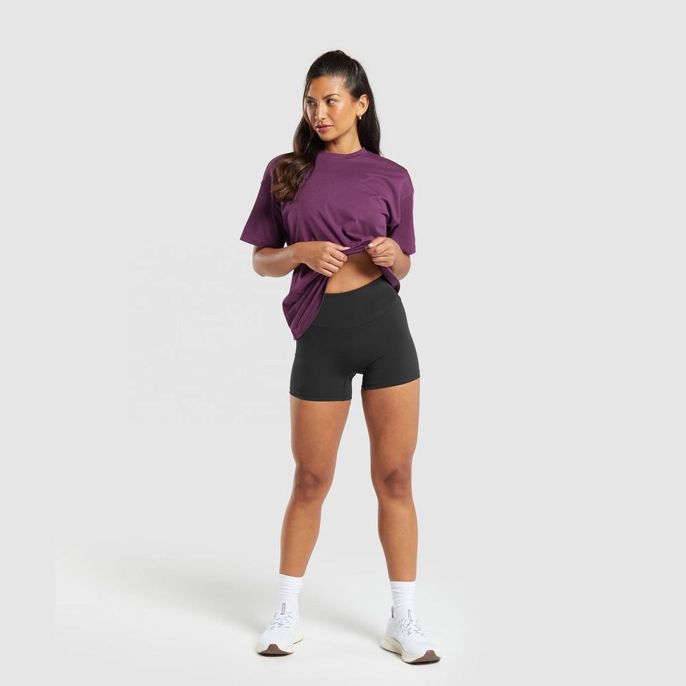 เสื้อยืดผ้าฝ้ายระบายอากาศได้ดีคอกลมแขนสั้นสำหรับผู้หญิง100% ทรงหลวมลำลอง
