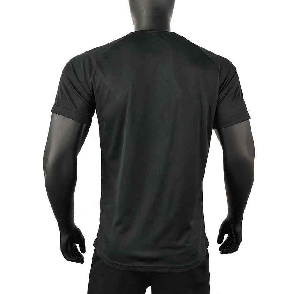เสื้อยืดพิมพ์ลายตามสั่ง สีดำ เสื้อยืดออกกำลังกาย ระบายอากาศได้ดี ผลิตจากโพลีเอสเตอร์ 100% สำหรับผู้ชาย