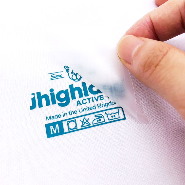 ป้ายคอเสื้อยืดแบบรีดร้อน ป้ายดูแลการซักผ้าแบบไม่มีป้าย ป้ายพิมพ์โลโก้แบบรีดร้อนตามสั่ง