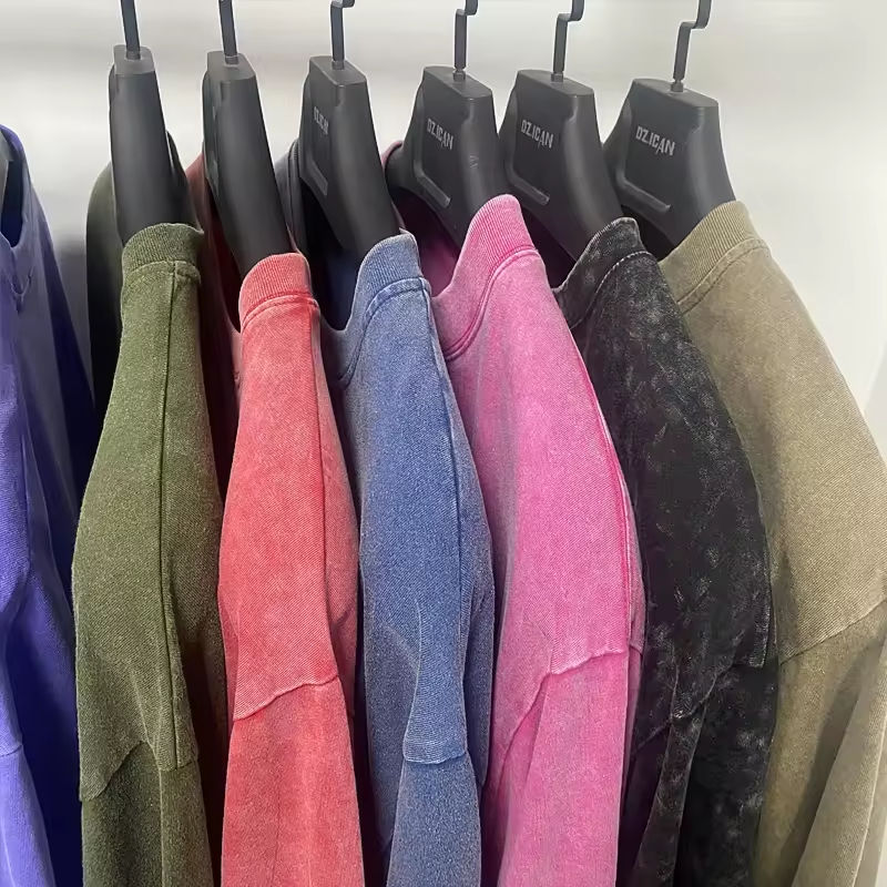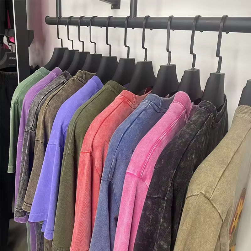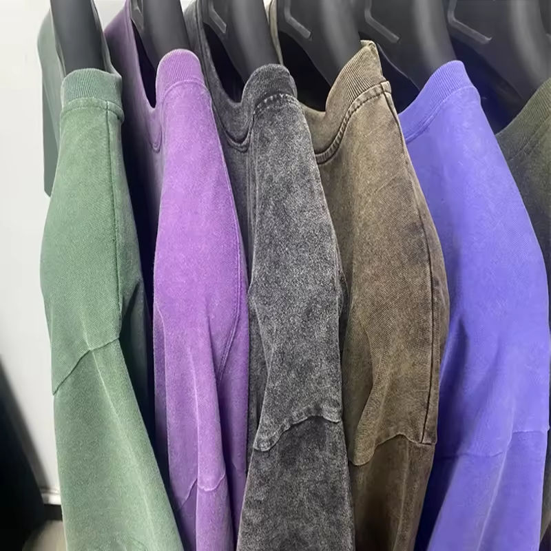 เสื้อยืดเนื้อหนา ซักย้อมสีแบบแอซิดวอช ผ้าฝ้ายเจอร์ซีย์ 100% เสื้อยืดหรูหราสไตล์วินเทจทรงโอเวอร์ไซส์ เสื้อยืดเปล่าสำหรับผู้ชาย