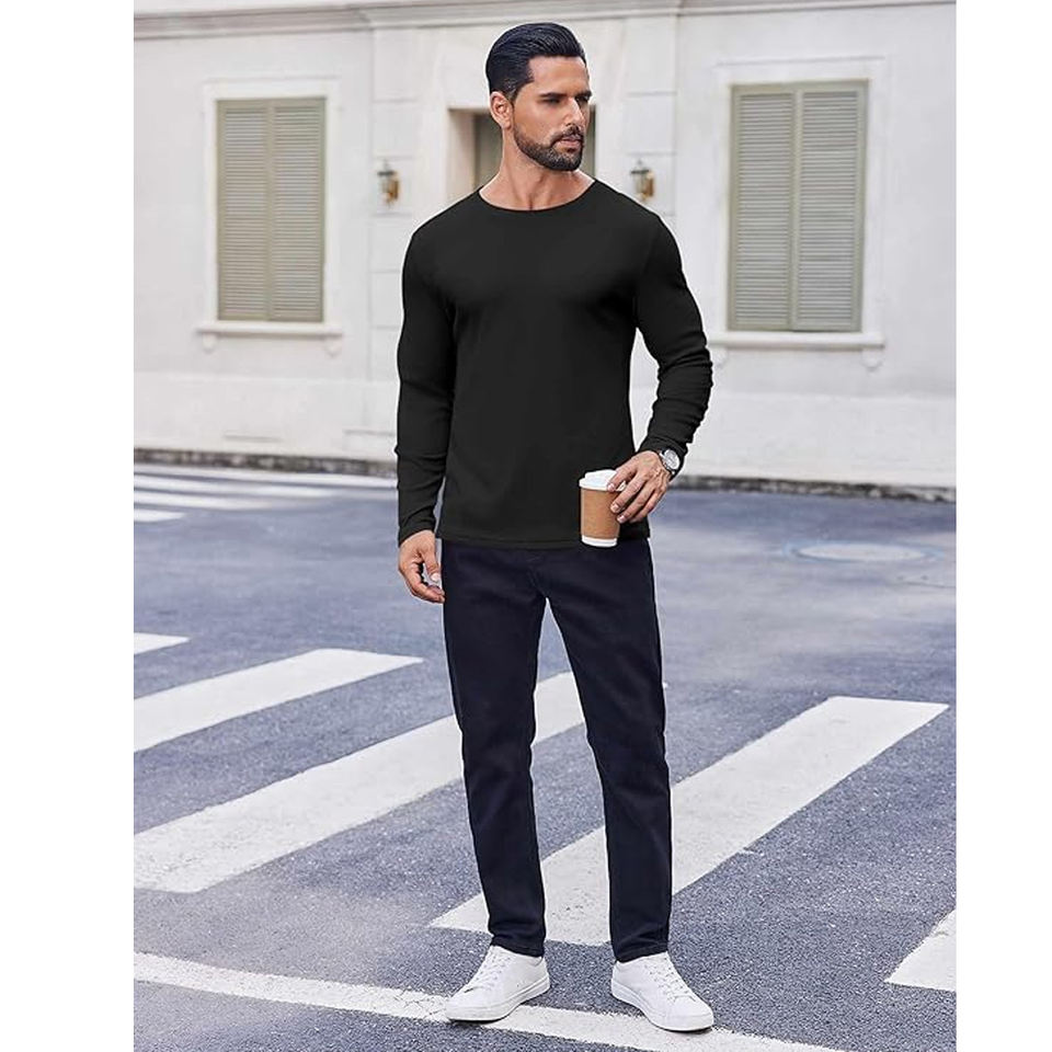 เสื้อยืดผู้ชาย เสื้อฟิตเนส เสื้อยืดออกกำลังกายทรงเข้ารูป เสื้อเพาะกาย แขนยาว ชายเสื้อโค้ง ชุดกีฬา สำหรับออกกำลังกายที่ยิม