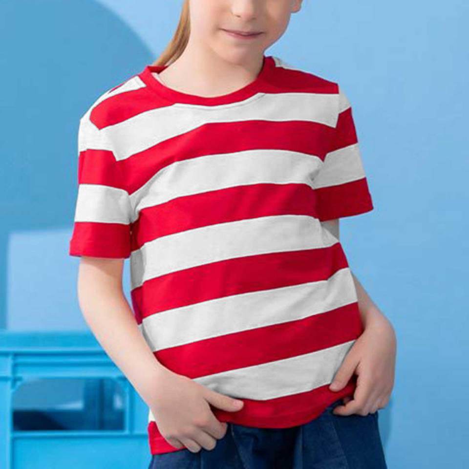 เสื้อยืดเด็กชายหญิง เสื้อยืดลายทางเด็กชาย เสื้อยืดเด็กวัยหัดเดิน 7-8 ปี รับผลิตตามแบบ OEM 180 GSM ผ้าฝ้ายพรีเมียม 100%