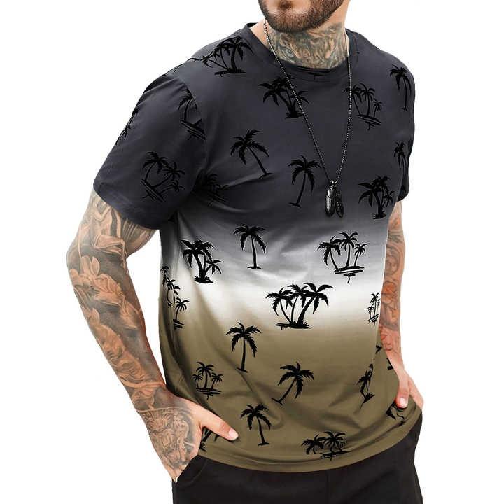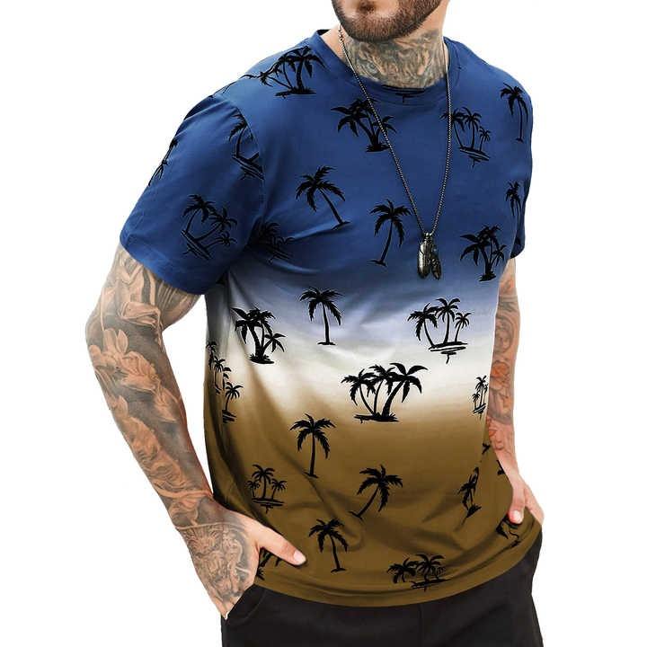 เสื้อยืดสำหรับผู้ชายเสื้อผ้าลายต้นมะพร้าวฮาวายฤดูร้อนเสื้อแขนสั้นเสื้อยืดคอกลมเสื้อลำลองของผู้ชายเสื้อยืดสตรีทแวร์