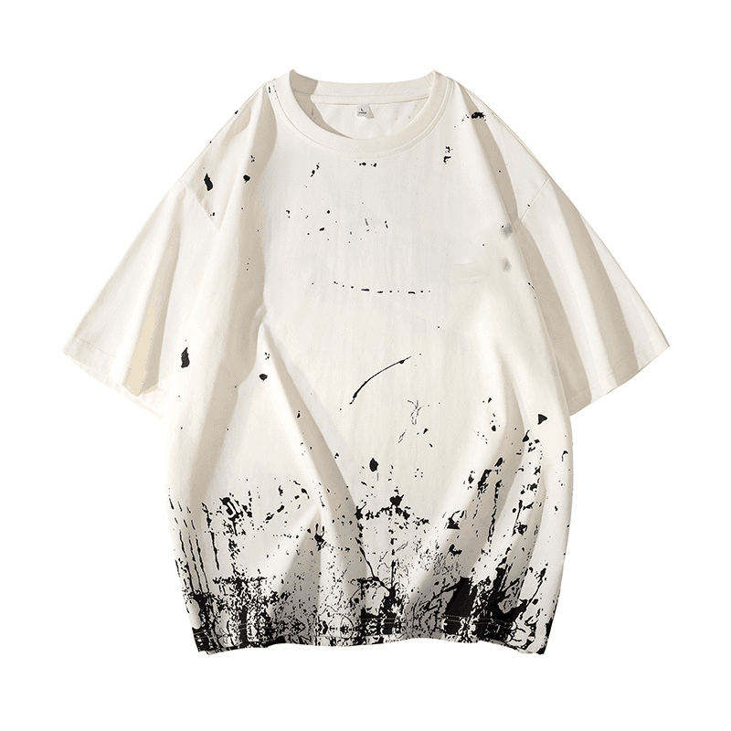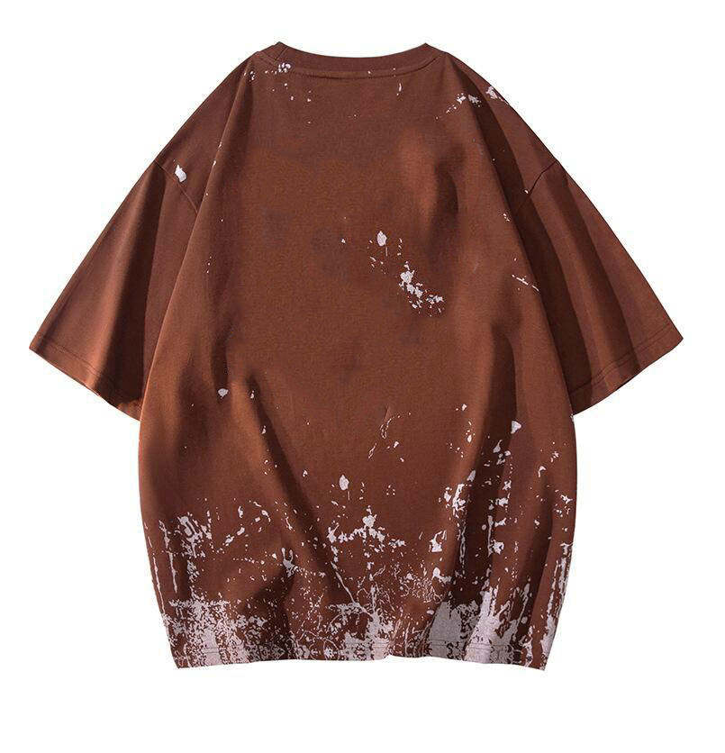 เสื้อยืดพิมพ์ลายพัฟฟ์ด้านหน้าและด้านหลังทรงโอเวอร์ไซส์สำหรับเด็กผู้ชาย ดีไซน์พิมพ์ลายพัฟฟ์สุดเท่