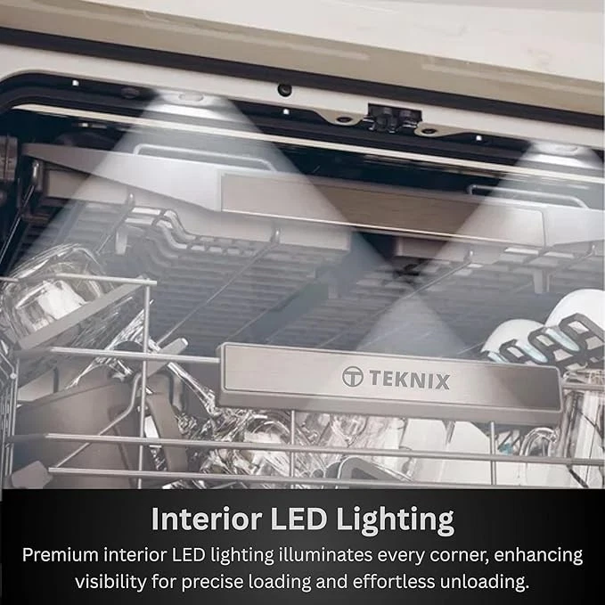 เครื่องล้างจาน T-e-k-n-i-x T-X-3BD608 สีดำ ขนาดเต็ม 15 ชุด พร้อมระบบประหยัดพลังงาน