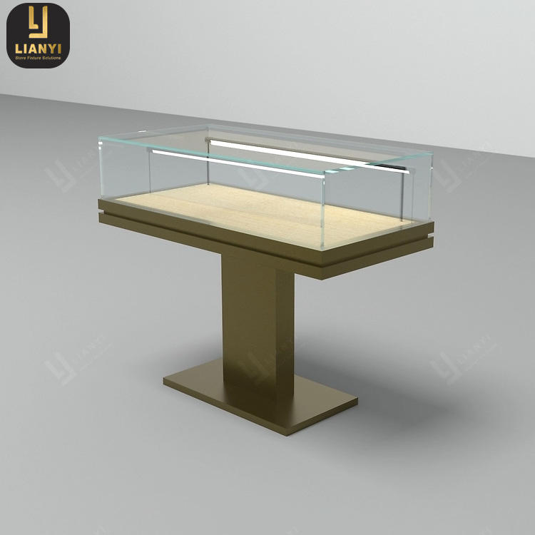 ตู้โชว์ทรงตัวทีสำหรับจัดแสดงนิทรรศการในพิพิธภัณฑ์ เฟอร์นิเจอร์ออกแบบพิเศษพร้อมฐานยกพื้นสำหรับโชว์เครื่องประดับหรูหรา