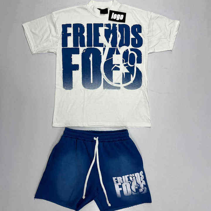 เซ็ตเสื้อยืดและกางเกงขาสั้นเสื้อยืดสำหรับผู้ชายชุดวอร์ม2ชิ้นเสื้อยืดแบบสั่งทำสำหรับฤดูร้อน