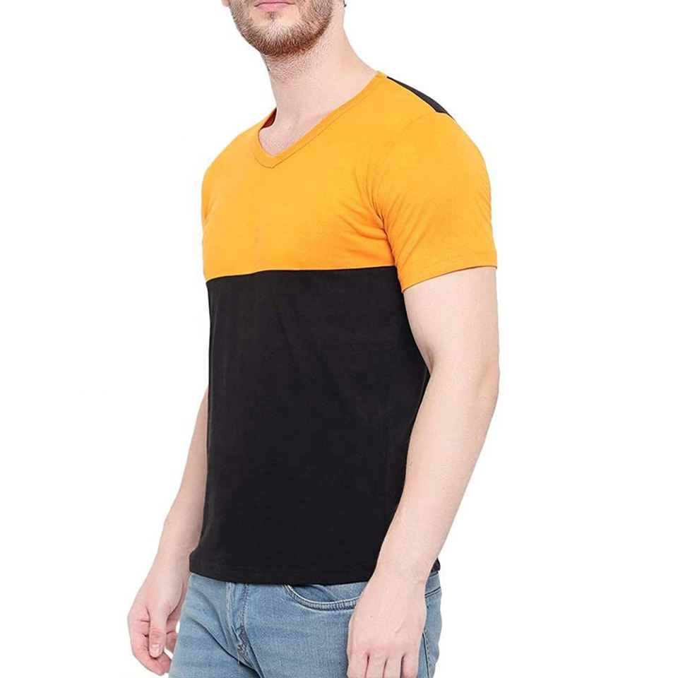 T-shirt for men orange color with dark red color line for summer 2023 High Quality 100% COTTON USA Size Plain Thick T-shirt