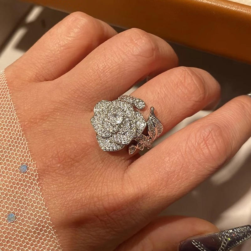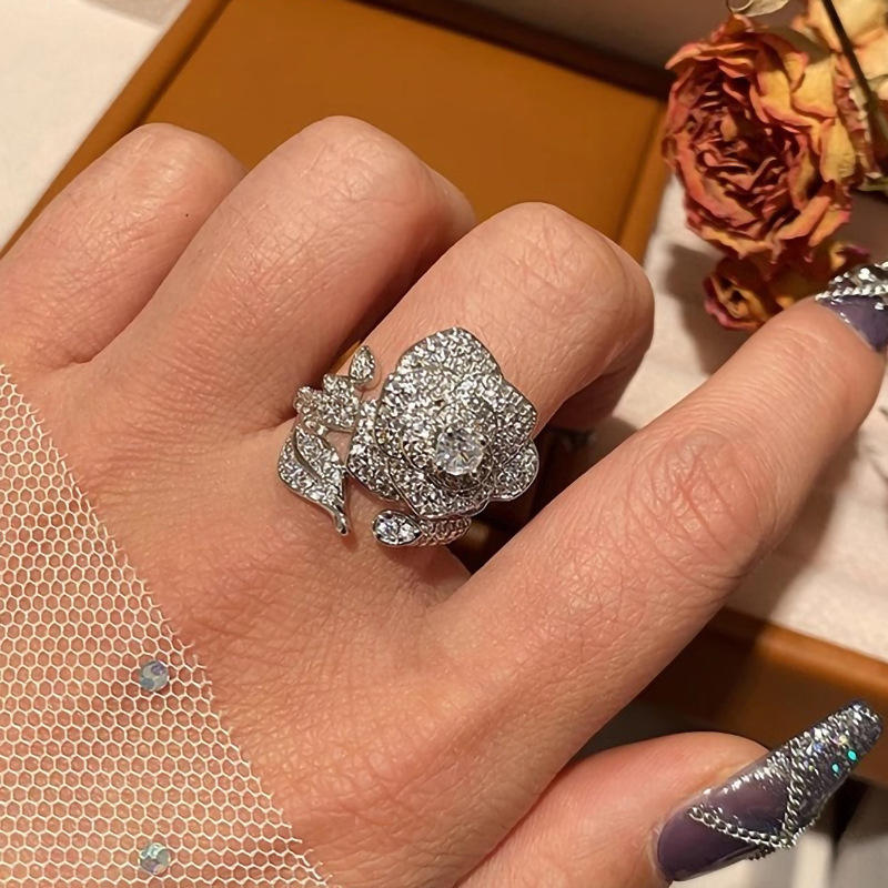 T0139 แหวนเพชร ทองคำขาว ทรงกลมธรรมชาติ ทรงเหลี่ยมบริลเลียนท์ สี D เครื่องประดับงานแต่งงานสำหรับผู้หญิง