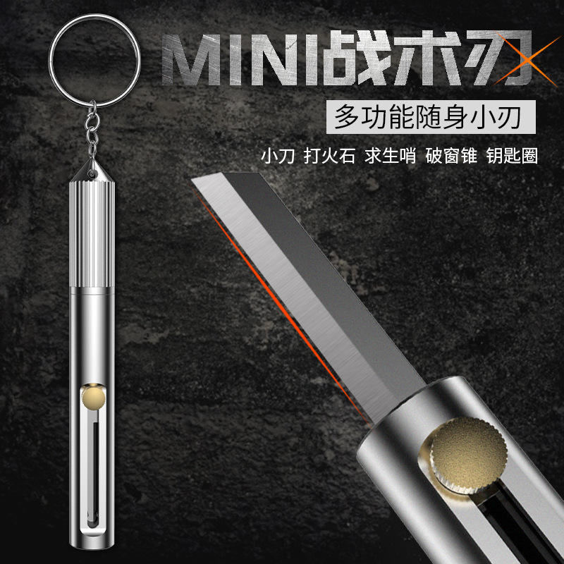 T02 มีดมินิอเนกประสงค์ ใบมีด 31 มม. เหล็กคาร์บอนสูง ที่จุดไฟกลางแจ้ง พวงกุญแจ เครื่องมือพกพา