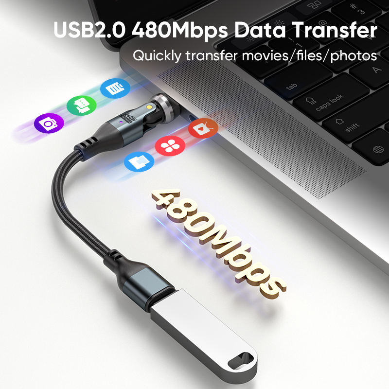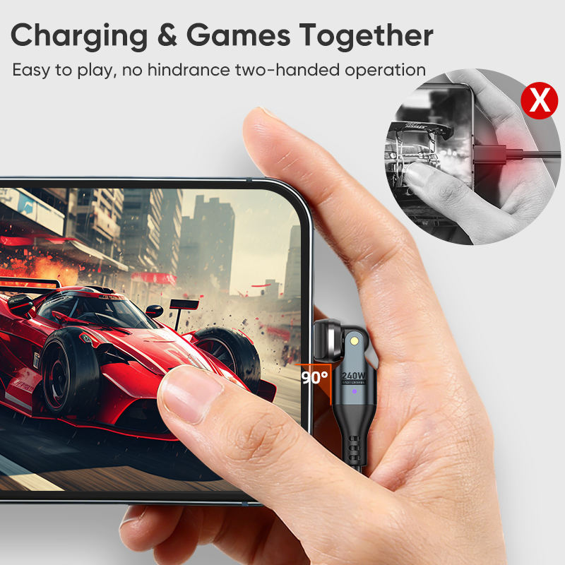 อะแดปเตอร์ T1-2 Greenport 540 Rotation 240W Type C to C สำหรับโทรศัพท์และแล็ปท็อป พร้อมสายต่อ USB2.0 ยาว 10 ซม. แบบ USB-C