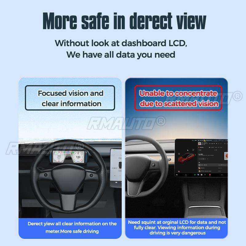 จอแสดงผล HUD ขนาด 7 นิ้ว สำหรับรถยนต์ หน้าจอ IPS HD สำหรับ Tesla Model 3 Y ปี 2019-2022