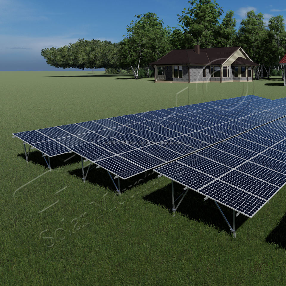 โครงสร้างติดตั้งบนพื้นดินสำหรับฟาร์มโซลาร์เซลล์ T2VC เมกะวัตต์ ทนทาน รับประกัน 10 ปี รับน้ำหนักลม 60 เมตร/วินาที รับน้ำหนักหิมะ 2.5 กิโลนิวตัน/เมตร