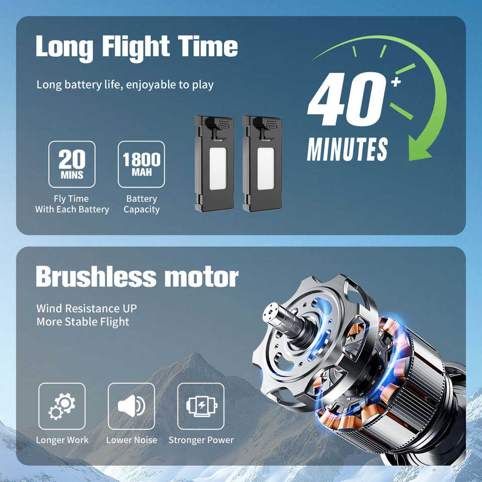 โดรนขนาดเล็ก T800 Brushless พร้อมกล้องคู่ ระบบส่งสัญญาณภาพ FPV HD ระบบ Optical Flow Positioning ใช้งานง่ายสำหรับมือใหม่ โหมด Headless