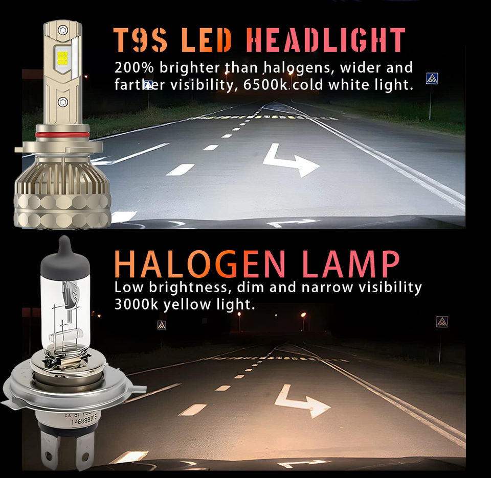 หลอดไฟหน้ารถยนต์ T9S กำลังสูง 180W 9007 9012 9005 9006 H7 H4 หลอดทองแดงสามเส้น 6000K