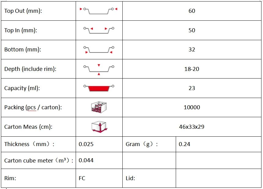 ถ้วยอลูมิเนียมฟอยล์ทรงกลมขนาดเล็กถาดเค้กมินิแบบใช้แล้วทิ้งแม่พิมพ์ทาร์ตไข่อลูมิเนียมฟอยล์แบบ TA60ขนาดเล็ก