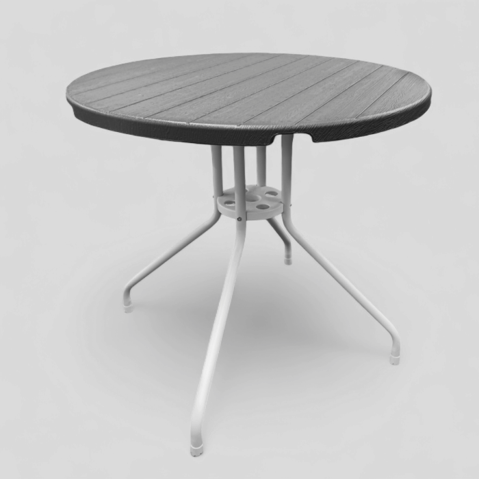 โต๊ะทรงกลม เส้นผ่านศูนย์กลาง 80 ซม. โลหะสีขาวและพลาสติกลายไม้สีแอนทราไซต์