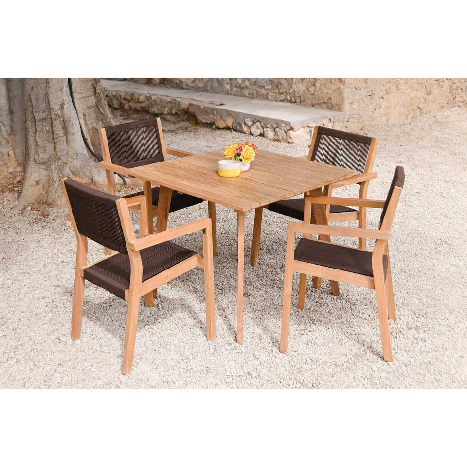 ชุดโต๊ะ 5 ที่นั่ง เชือกไม้สัก 90x90x75 54x56x84 สีน้ำตาล
