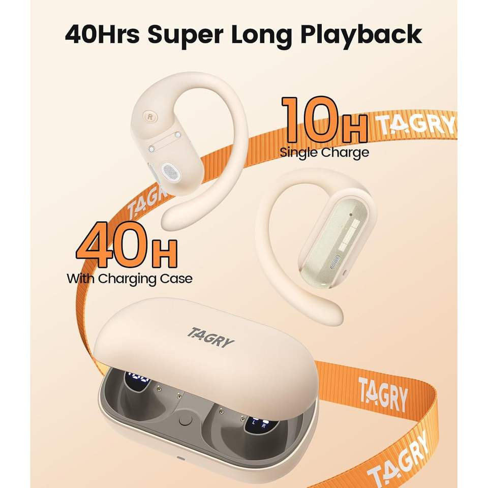 Tagry หูฟังเอียร์บัดไร้สายแบบเปิดหูตามหลักสรีรศาสตร์สำหรับเล่นกีฬาพร้อม40hrs เวลาเล่นเร็วชิปเซ็ต JL จอแสดงผลดิจิตอล