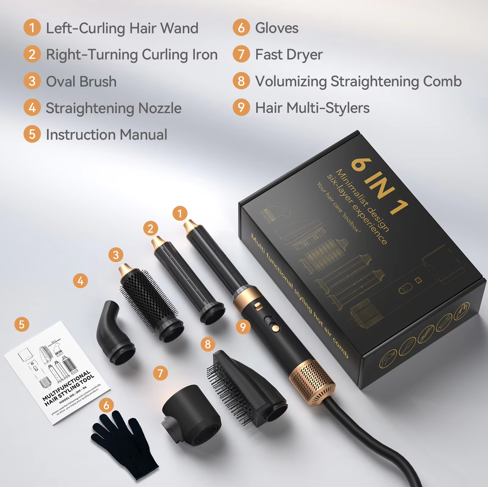 TAHATH ออลอินวัน แฮร์ สไตล์ลิ่ง โซลูชั่น แปรงลมร้อนอเนกประสงค์ 6 หัวเปลี่ยนได้ พร้อมไฟ LED และระบบ PTC สำหรับเป่าแห้ง ม้วนผม เพิ่มวอลลุ่ม
